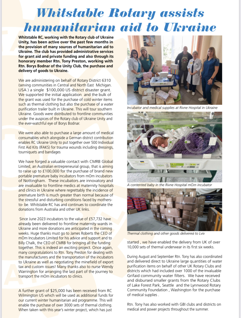 CMRB and Rotary have joined forces to support and raise funds for mOm incubators, which are innovative devices specifically designed to provide optimal care for premature babies. With cutting-edge technology and ease of use, these incubators offer a nurturing environment that ensures these fragile infants receive the highest standard of care during their critical early days. Together, we aim to bring hope and a fighting chance to the most vulnerable among us.